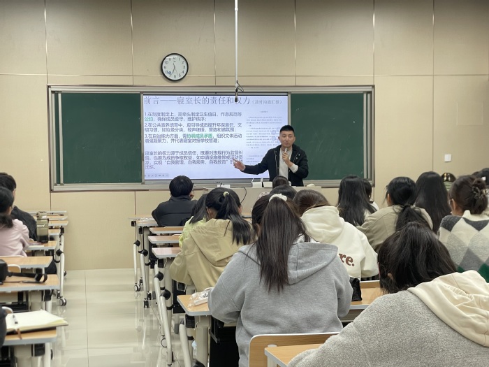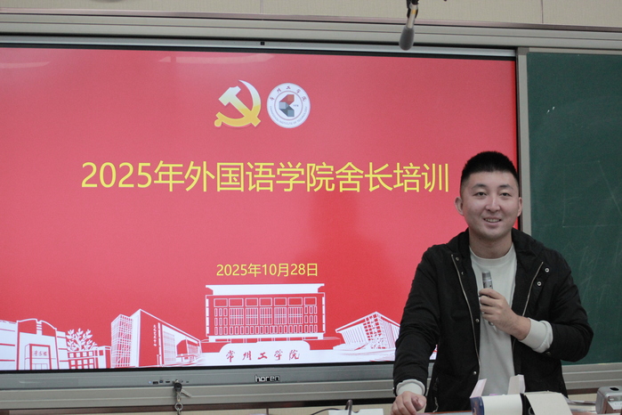 为进一步营造安全、文明、和谐的寝室文化,提升学生公寓管理效能,10月28日,外国语学院组织召开2025级新生寝室长专题培训会,全体公寓委委员和新生寝室长参加,由公寓辅导员王彤老师主持。