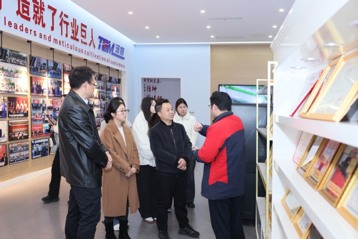 走访伊始,在企业相关负责人陪同下,师生一行实地参观了公司产品展览馆和生产现场,全面了解公司发展历程、核心业务布局、生产运营模式及海外市场拓展情况,直观感受企业文化、技术实力与岗位需求场景,为后续精准对接外语类人才培养奠定基础。