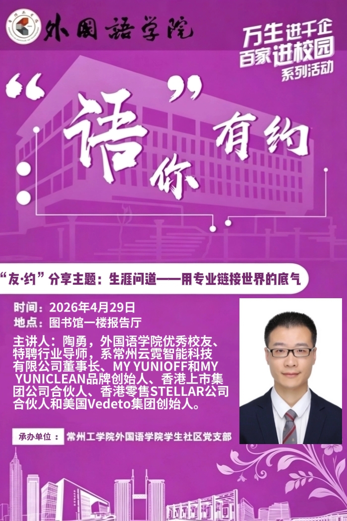 4月29日 | “语”你有约·第三十七期 “友·约”分享主题:生涯问道——用专业链接世界的底气